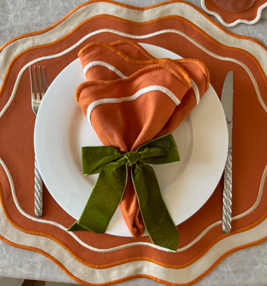 Notre rond de serviette signature, en velour vert kaki rigide, facile à utiliser grâce a son élastique, il s'adapte à toutes les serviettes .